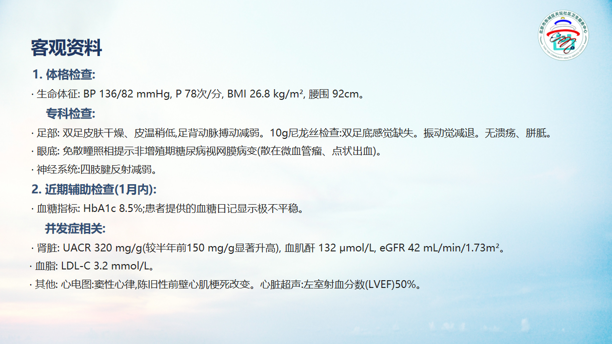 综合评估后,患者被明确诊断为合并多重并发症和合并症的复杂2型糖尿病,具体为: