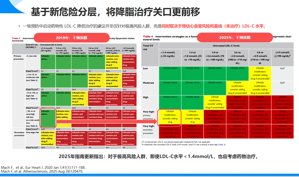参考文献:Mach F, et al. 2019 ESC/EAS Guidelines for the management of dyslipidaemias: 2025 focused update. Atherosclerosis. 2025 Aug 28:120479.