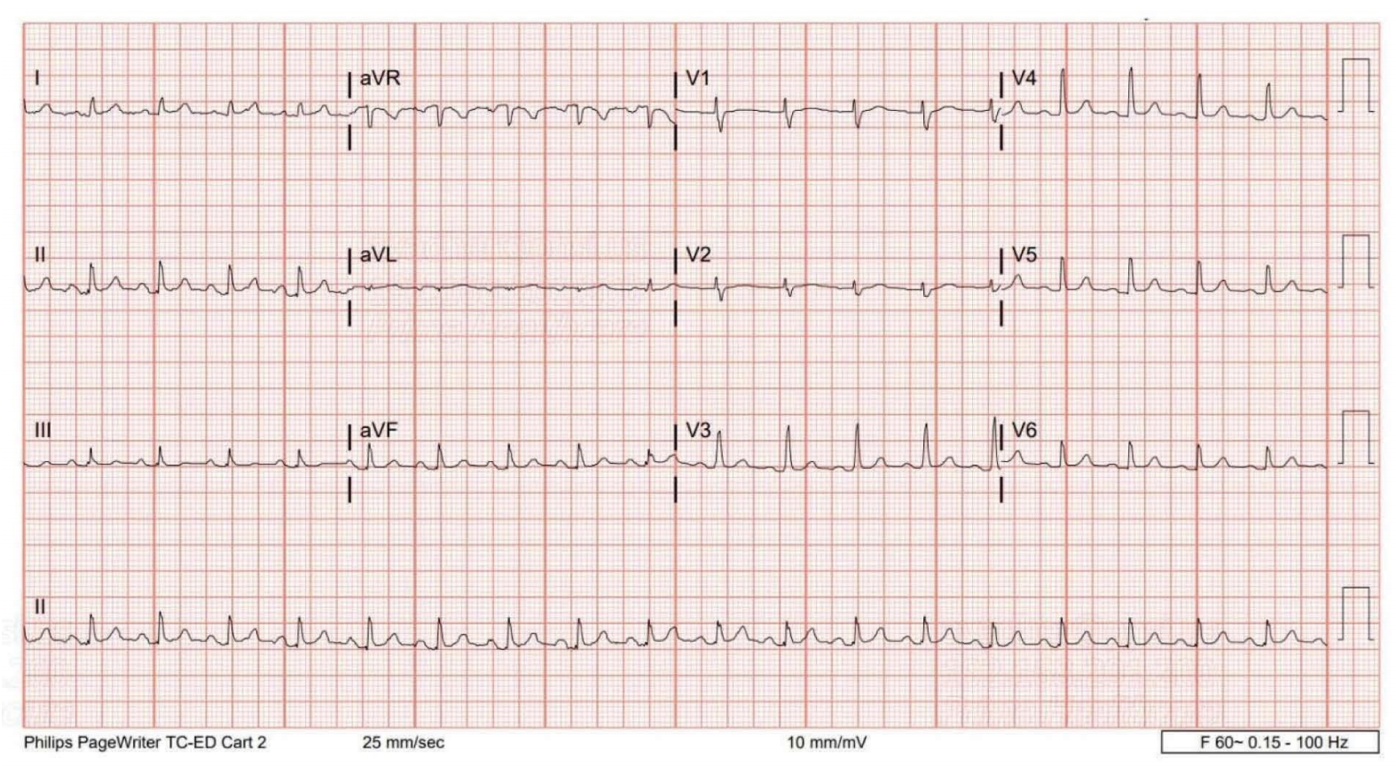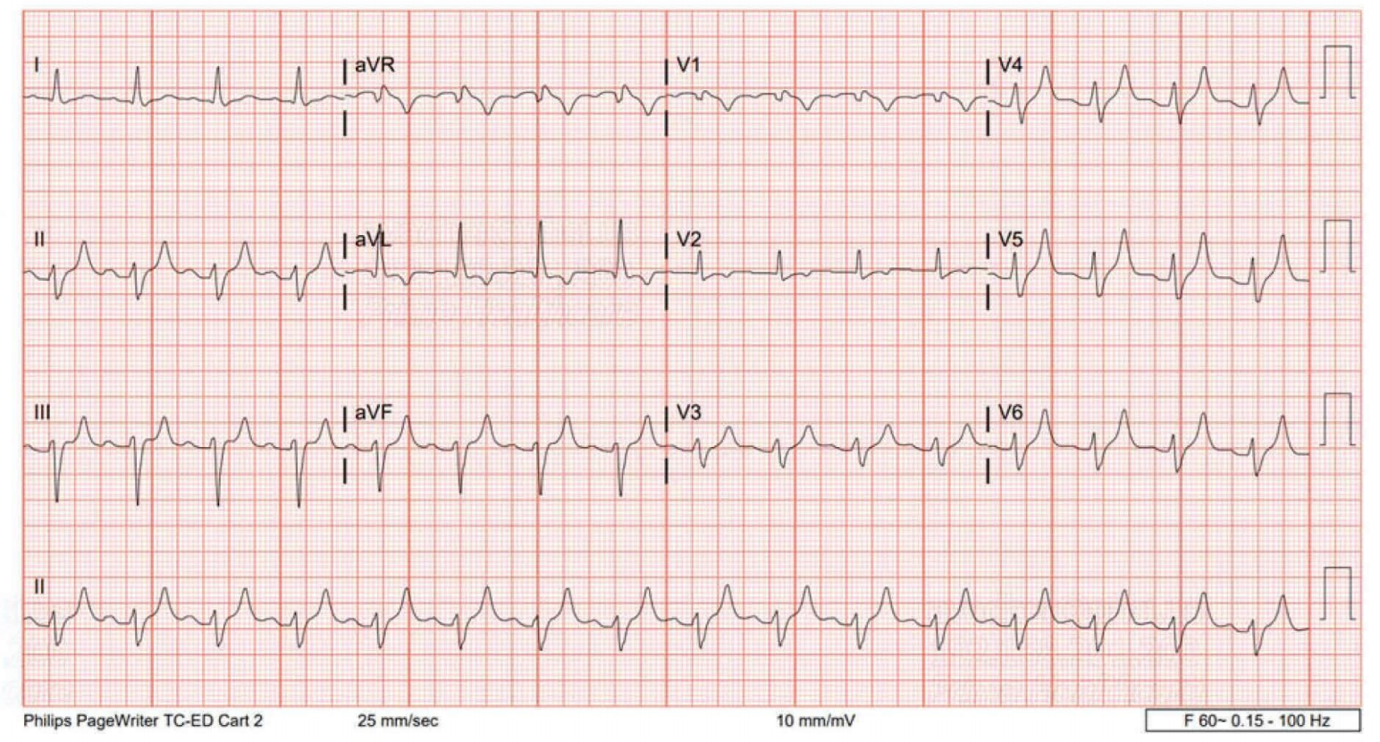 图2:复查心电图:T波高尖消失,PR间期及QTc恢复正常