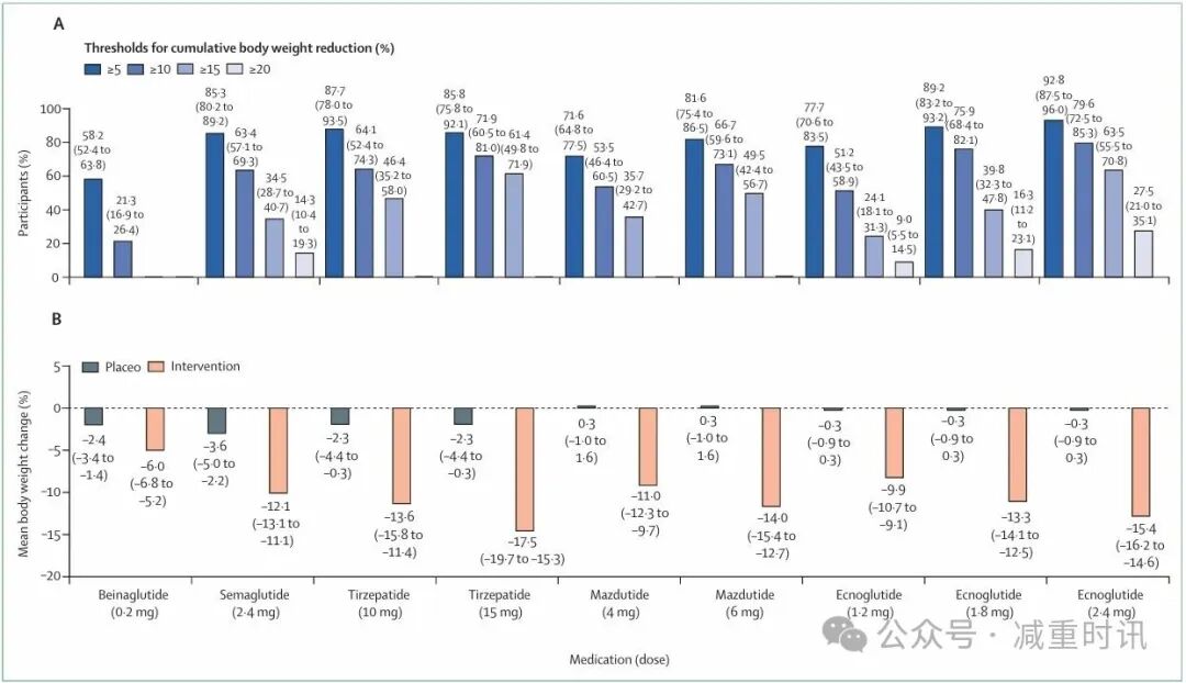 图2. 不同减重在中国成人临床研究中的疗效