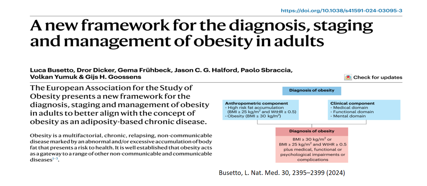 2.Busetto, Luca, et al. "A new framework for the diagnosis, staging and management of obsity in adults." Nature Medicine, vol. 30, 2024, pp. 2395–2399.