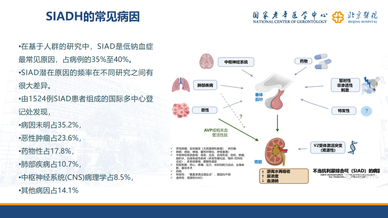 SIADH因素:反复的肺部与泌尿系统感染、疼痛刺激、以及可能的药物影响,均可诱发抗利尿激素(ADH)不适当分泌。