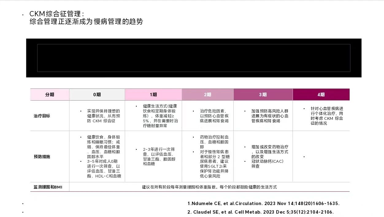 CKM综合征是一种慢性进行性疾病,早期发现和早期干预往往与更大的临床获益相关[5-6]。因此,徐波教授强调,从0期开始即应进行适当的管理,以促进全生命周期的心肾代谢健康。