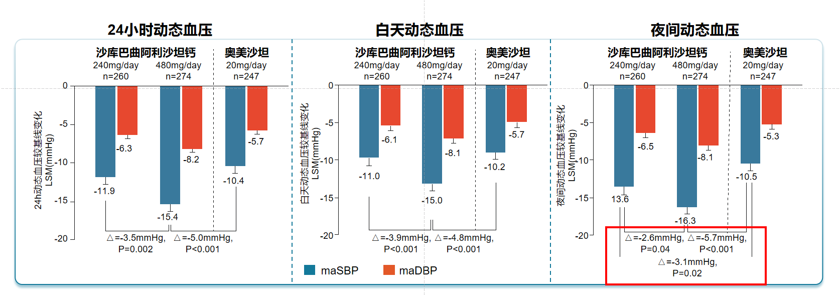 强效降压:与阳性对照药奥美沙坦20 mg相比,沙库巴曲阿利沙坦能更显著降低诊室血压和24小时动态血压,展现了更强大的血压控制能力。