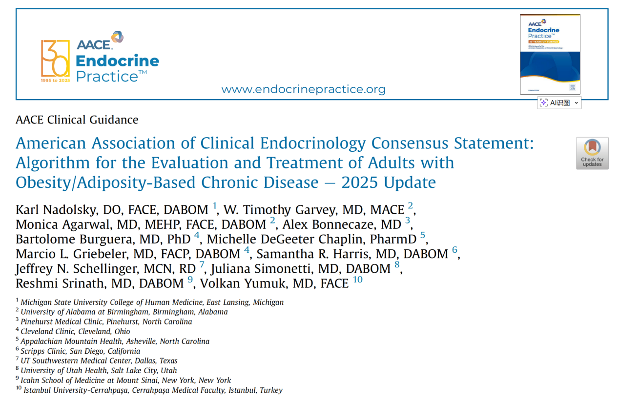 美国临床内分泌医师协会(AACE)共识声明:2025年成人肥胖医疗算法