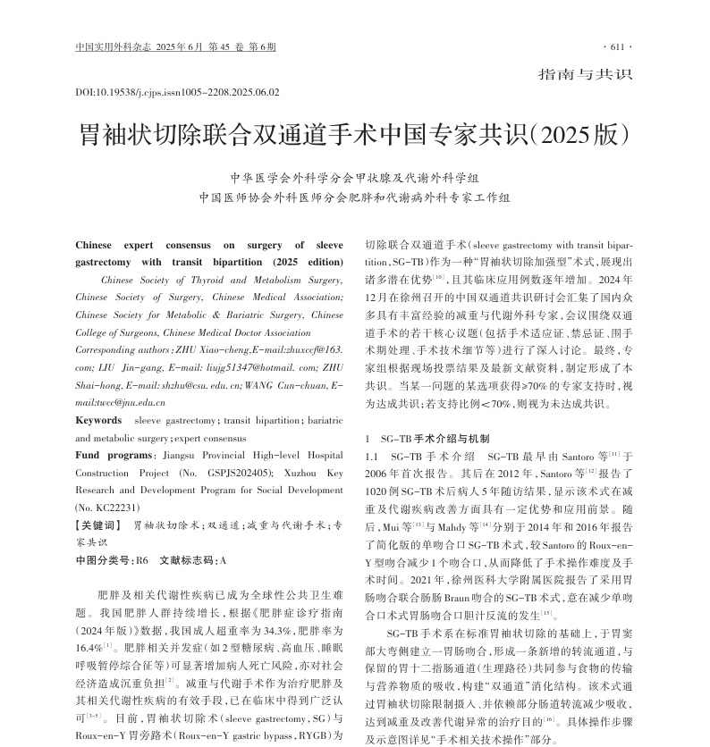 《胃袖状切除联合双通道手术中国专家共识(2025版)》