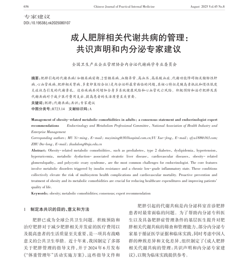代谢共病:《成人肥胖相关代谢共病的管理:共识声明和内分泌专家建议》