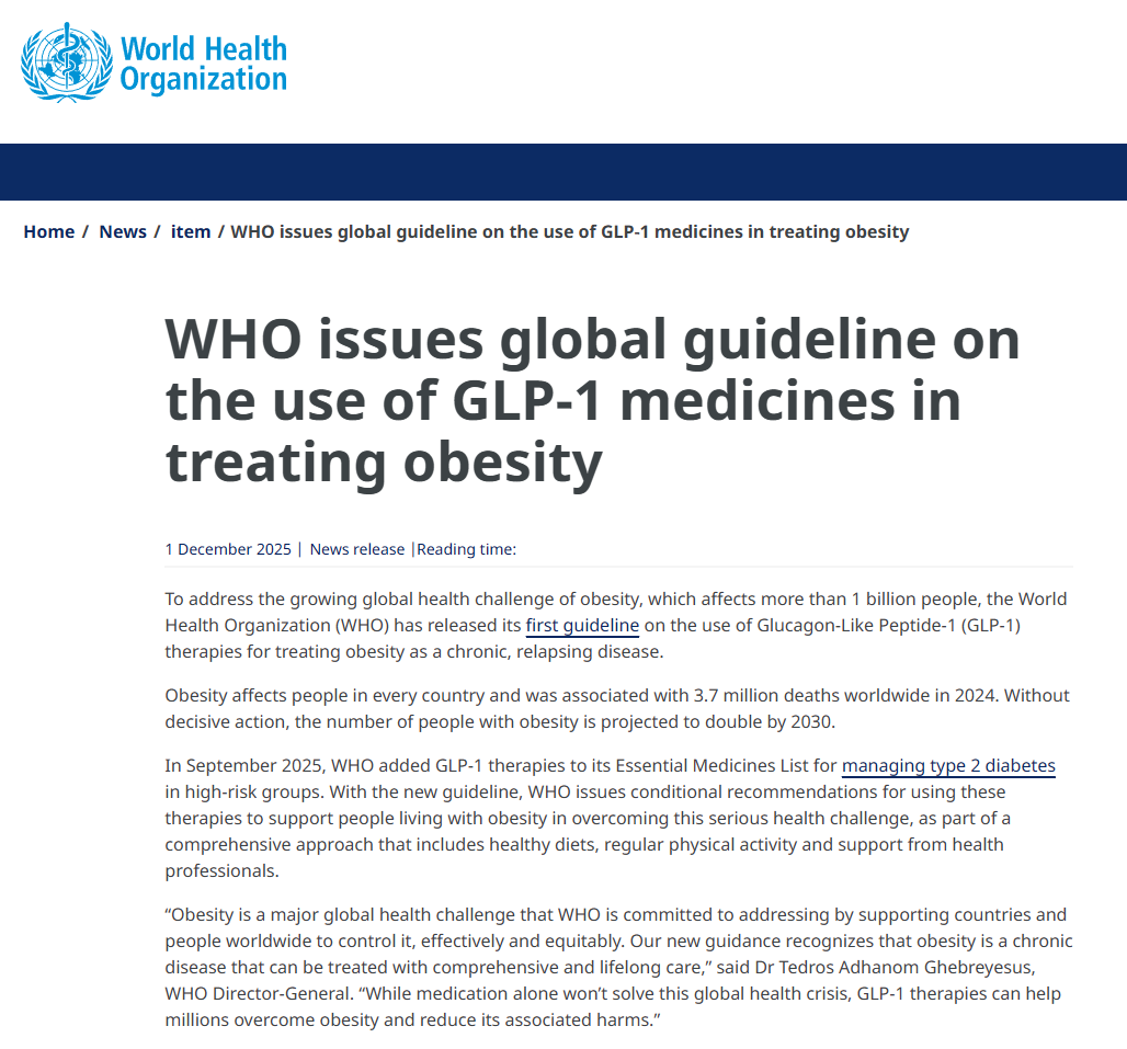 https://www.who.int/news/item/01-12-2025-who-issues-global-guideline-on-the-use-of-glp-1-medicines-in-treating-obesity
