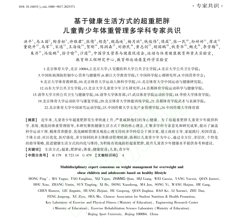 《基于健康生活方式的超重肥胖儿童青少年体重管理多学科专家共识》