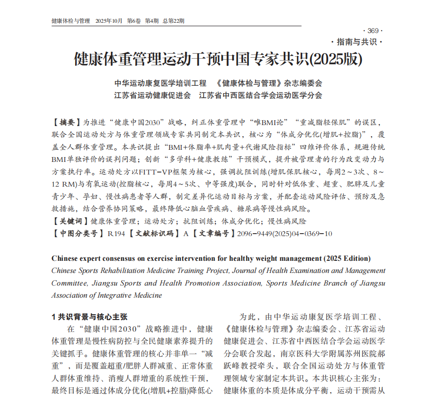 《健康体重管理运动干预中国专家共识(2025版)》