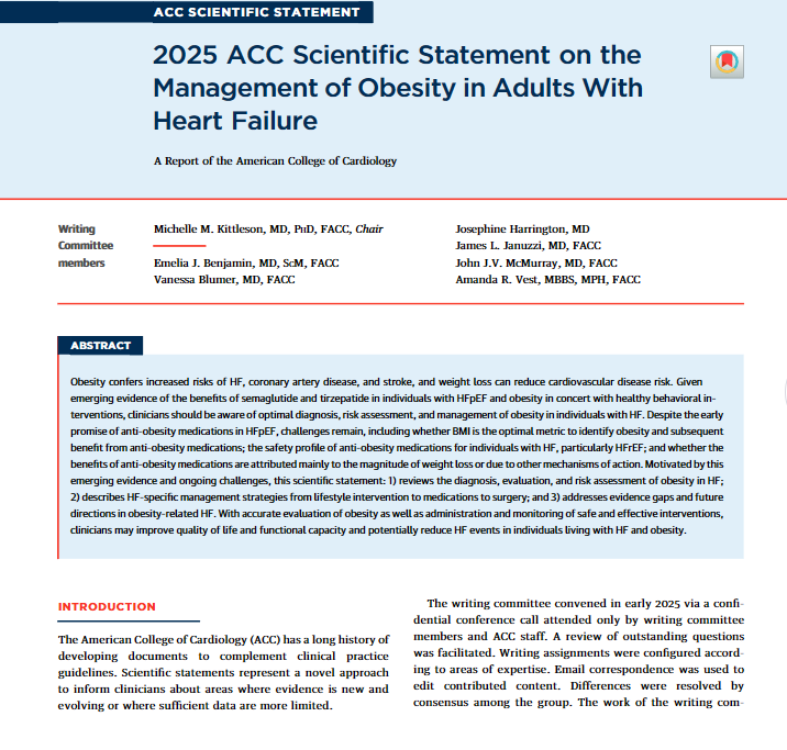 2025美国心脏病学会(ACC)成人心力衰竭患者肥胖管理科学声明