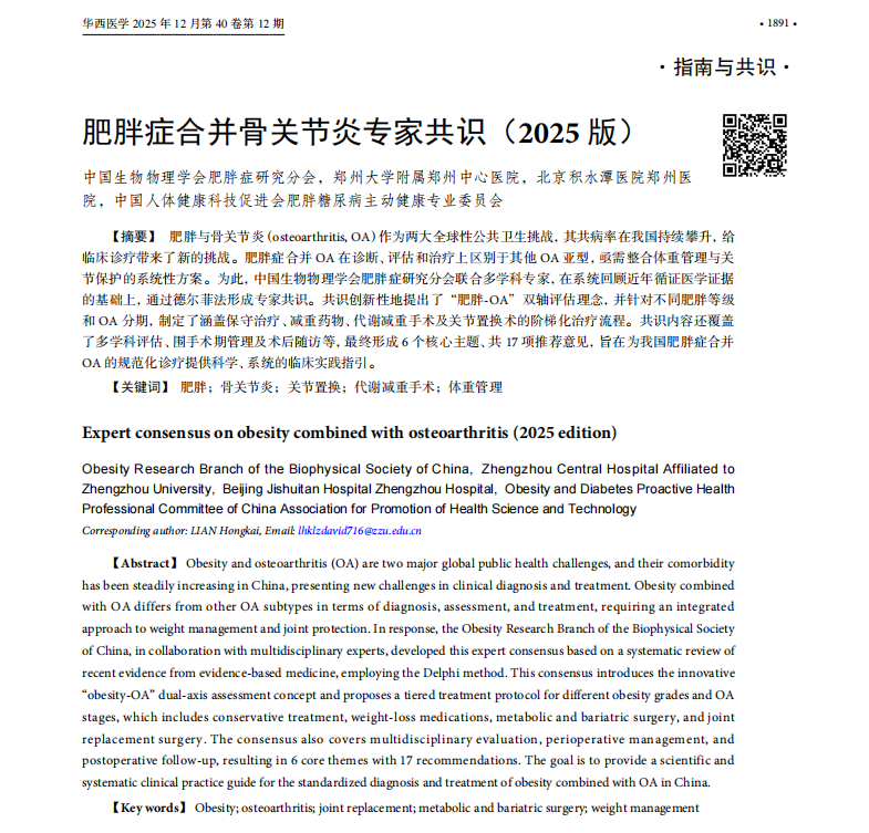 骨关节炎:《肥胖症合并骨关节炎专家共识(2025版)》