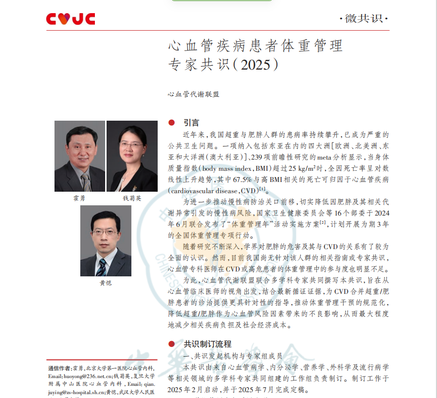 心血管疾病:《心血管疾病患者体重管理专家共识(2025)》