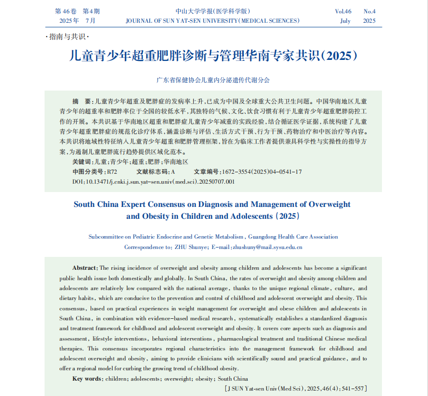 儿童青少年:《儿童青少年超重肥胖诊断与管理华南专家共识(2025)》