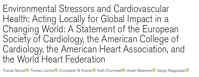 Münzel, Thomas et al. “Environmental Stressors and Cardiovascular Health: Acting Locally for Global Impact in a Changing World: A Statement of the European Society of Cardiology, the American College of Cardiology, the American Heart Association, and the World Heart Federation.” Circulation, 10.1161/CIRCULATIONAHA.125.079034. 20 Jan. 2026, doi:10.1161/CIRCULATIONAHA.125.079034