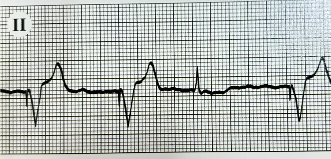 1.II导联可见规律直立的P波,每个QRS波前均有相关P波,PR间期固定在0.12-0.20秒的正常范围内,提示为窦性心律。
