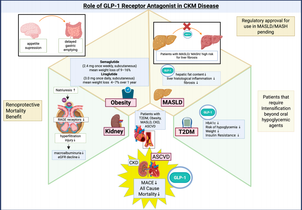 图2.GLP-1受体激动剂在CKM中的作用机制