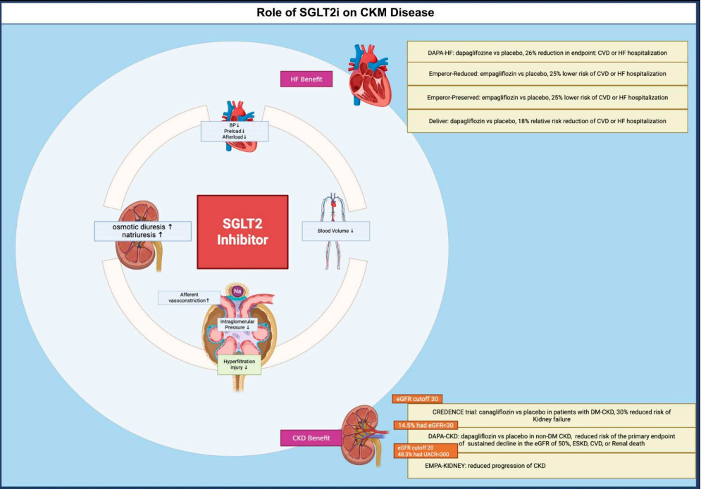 图1.SGLT -2抑制剂在CKM中的作用机制