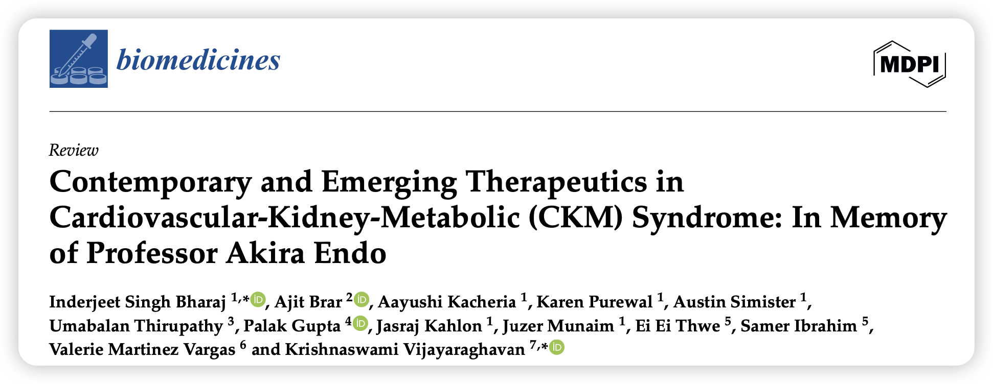 Bharaj IS, Brar A et al. Contemporary and Emerging Therapeutics in Cardiovascular-Kidney-Metabolic (CKM) Syndrome: In Memory of Professor Akira Endo. Biomedicines. 2025 Sep 8;13(9):2192.