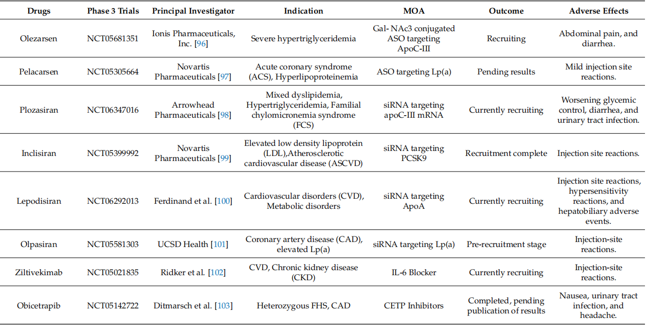 Pelacarsen和Olpasiran分别以ASO和siRNA形式靶向Lp(a),预计将于Ⅲ期试验中评估其对心血管事件的影响;