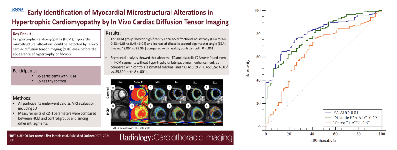 (4) Dong, Z.; Tang, Y.; Sun, P.; Yin, G.; Zhao, K.; Ma, X.; Yang, S.; Wang, J.; Xiang, X.; Yang, K. Early identification of myocardial microstructural alterations in hypertrophic cardiomyopathy with in vivo cardiac diffusion-tensor imaging. Radiology: Cardiothoracic Imaging 2025, 7 (1), e240009.