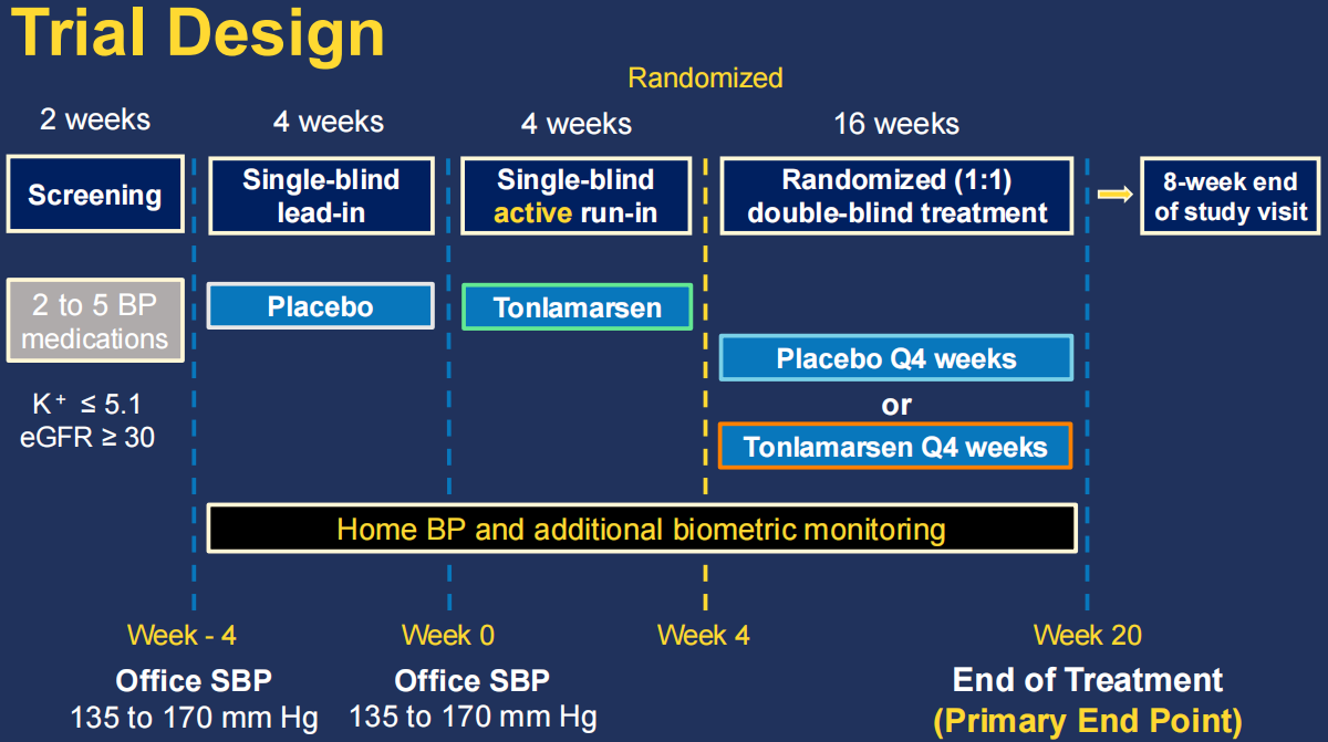 2.Efficacy and Safety of Tonlamarsen in Patients with Uncontrolled Hypertension.American College of Cardiology 2026, Scientific Sessions, Late-Breaking Clinical Trial. March 28, 2026