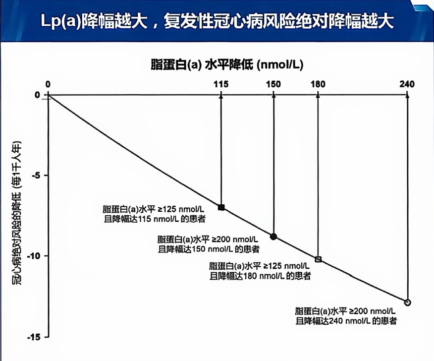 图2. Lp(a)降幅越大,复发性冠心病风险绝对降幅越大