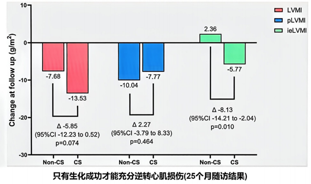 图3. SAAE治疗25个月随访:生化成功(CS)与未生化成功(Non-CS)患者左室肥厚指标变化对比