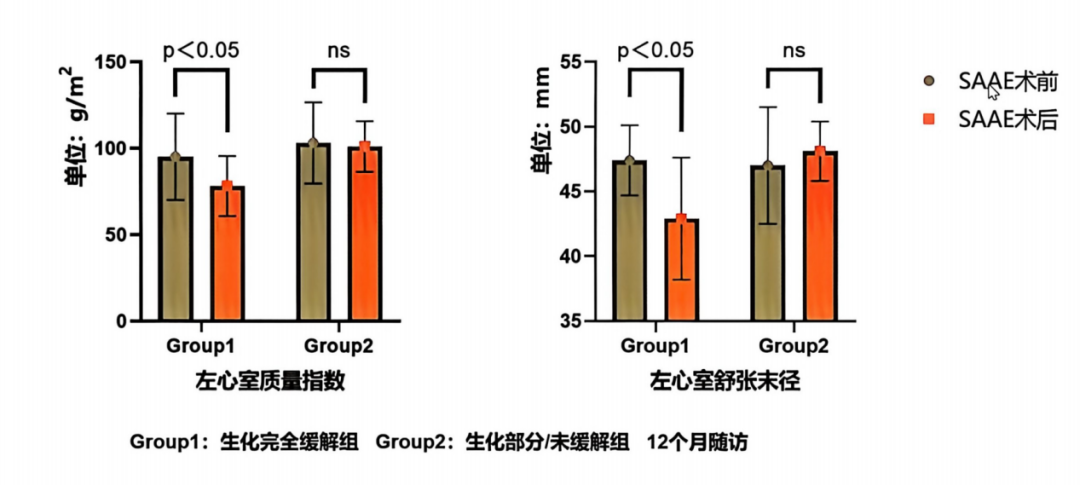研究团队纳入了一组IHA患者(传统认为手术无效),随访12个月后发现:在两组患者术后24小时动态血压完全一致的情况下,生化完全缓解组(醛固酮恢复正常)的左心室质量指数和左心室舒张末径均显著下降,而生化部分/未缓解组则无此变化[2]。