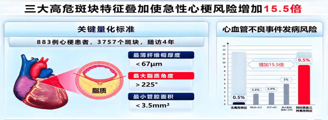 图4. 三大高危斑块特征及其与心血管不良事件风险关联