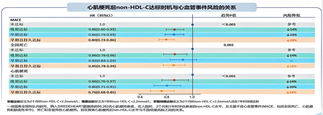 图9. SWEDEHEART研究不同降脂达标时机与心血管事件风险关系
